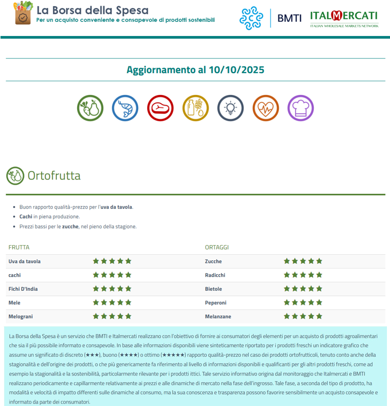 Ogni settimana per informare e favorire il consumatore per una spesa consapevole di frutta e verdura, sarà pubblicata una scheda utile per evidenziare i prodotti col miglior rapporto qualità-prezzo.