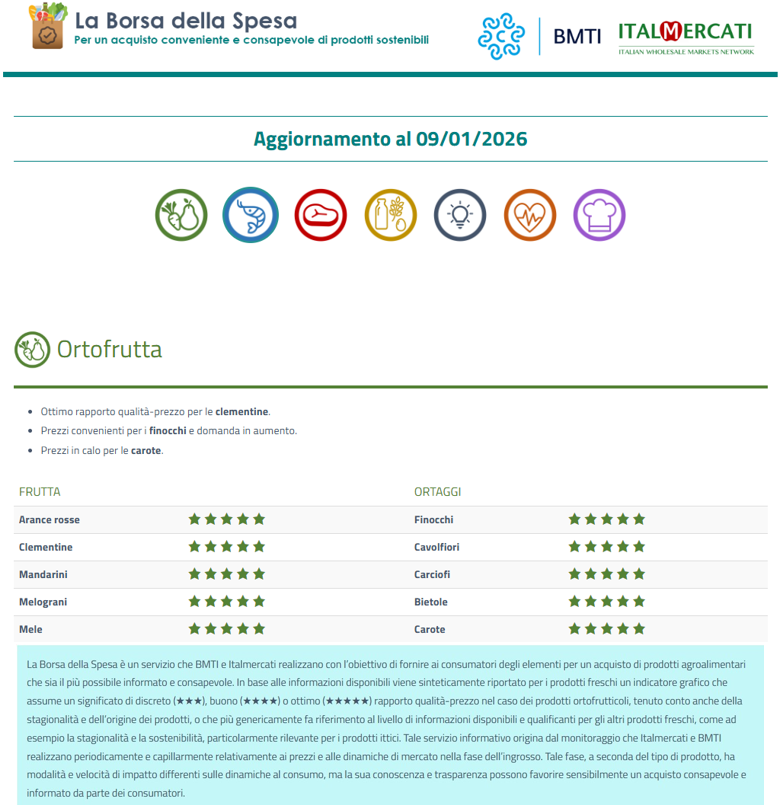 Ogni settimana per informare e favorire il consumatore per una spesa consapevole di frutta e verdura, sarà pubblicata una scheda utile per evidenziare i prodotti col miglior rapporto qualità-prezzo.