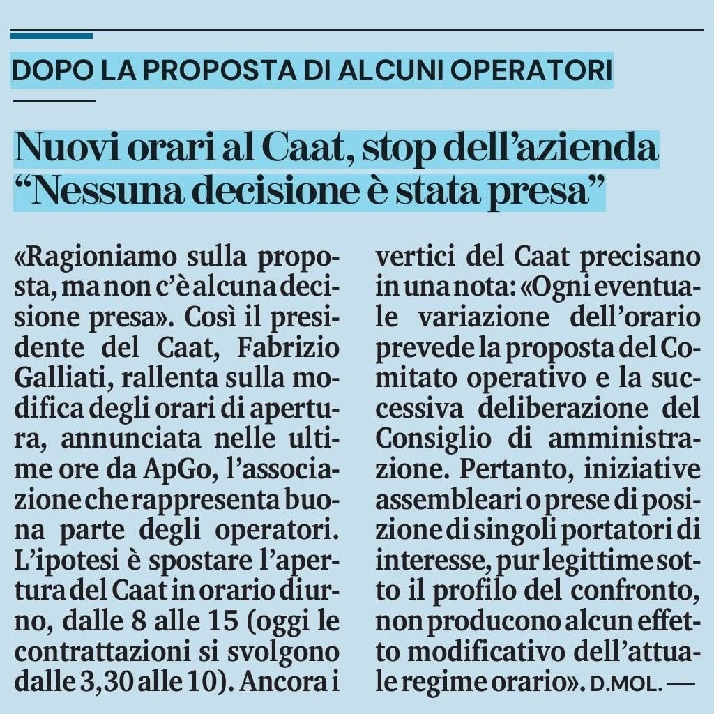 NUOVI ORARI AL CAAT, STOP DELL'AZIENDA "NESSUNA DECISIONE E' STATA PRESA"